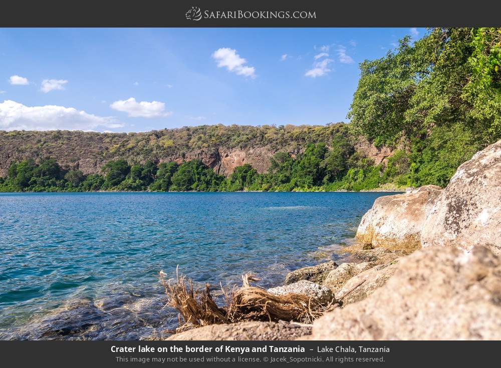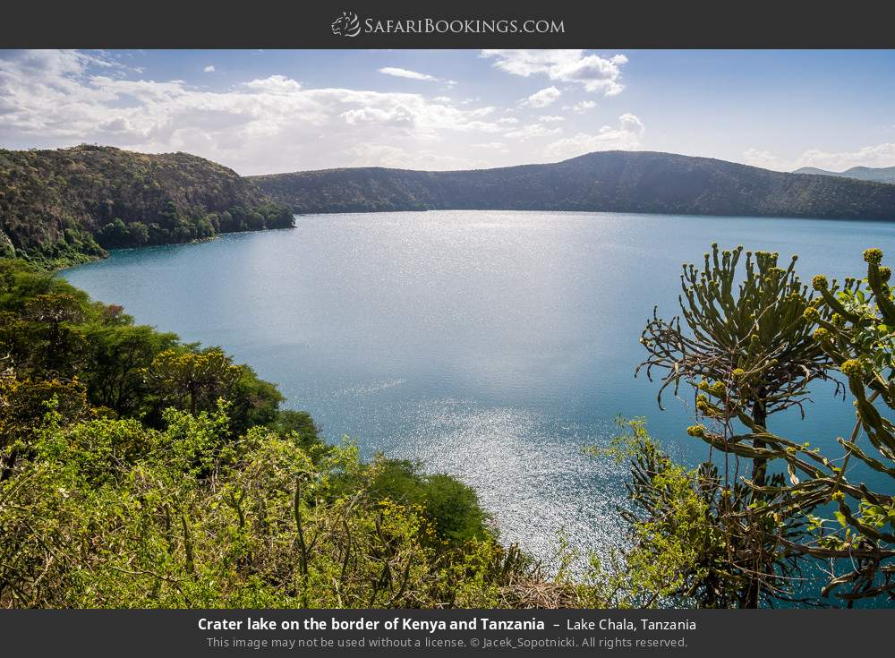 Lake Chala is a crater lake located in a caldera on the border of Tanzania and Kenya. It is situated on the eastern rim of Mount Kilimanjaro, approximately 48km (30mi) from Moshi town, which takes about an hour to reach. Depending on the season, the lake’s color varies from deep blue to turquoise and green, surrounded by a 100m (2,000ft) high crater rim. The lake is fed by groundwater streams from Kilimanjaro, which have been injected and discharged underground for about 10 million years.